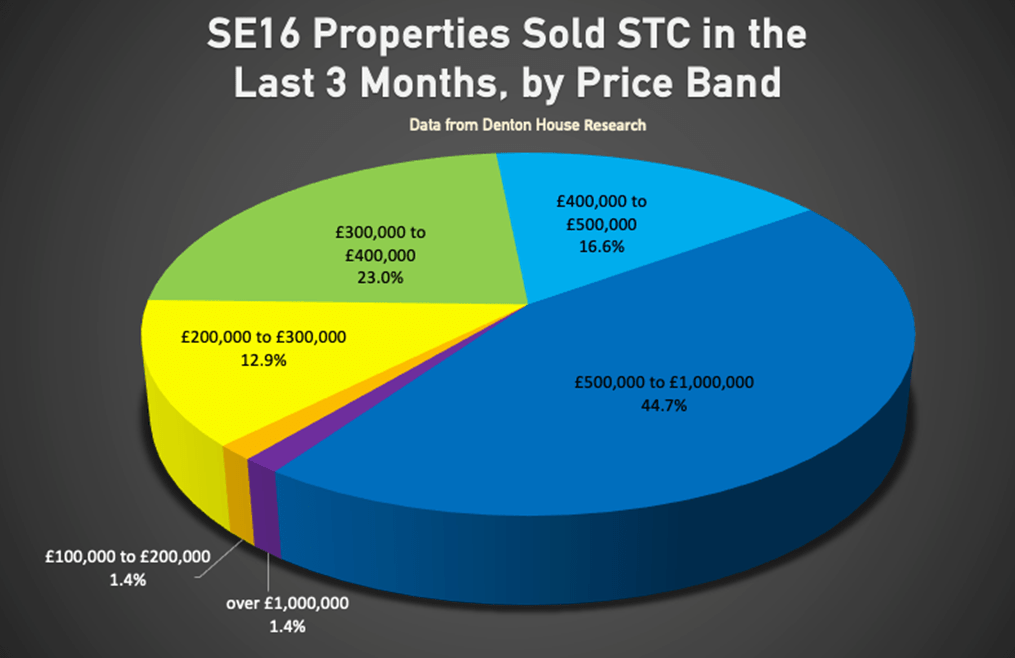 - over £1m – 3 sales agreed (SSTC) – 1.38% of the properties Sold STC in SE16 in the last 3 months