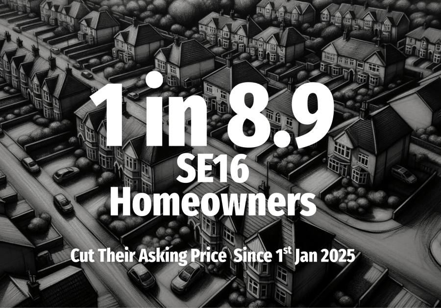 In fact, over the last five years and 3 months, around 1 in every 9.37 SE16 homes—10.67%—have reduced their asking price each month.